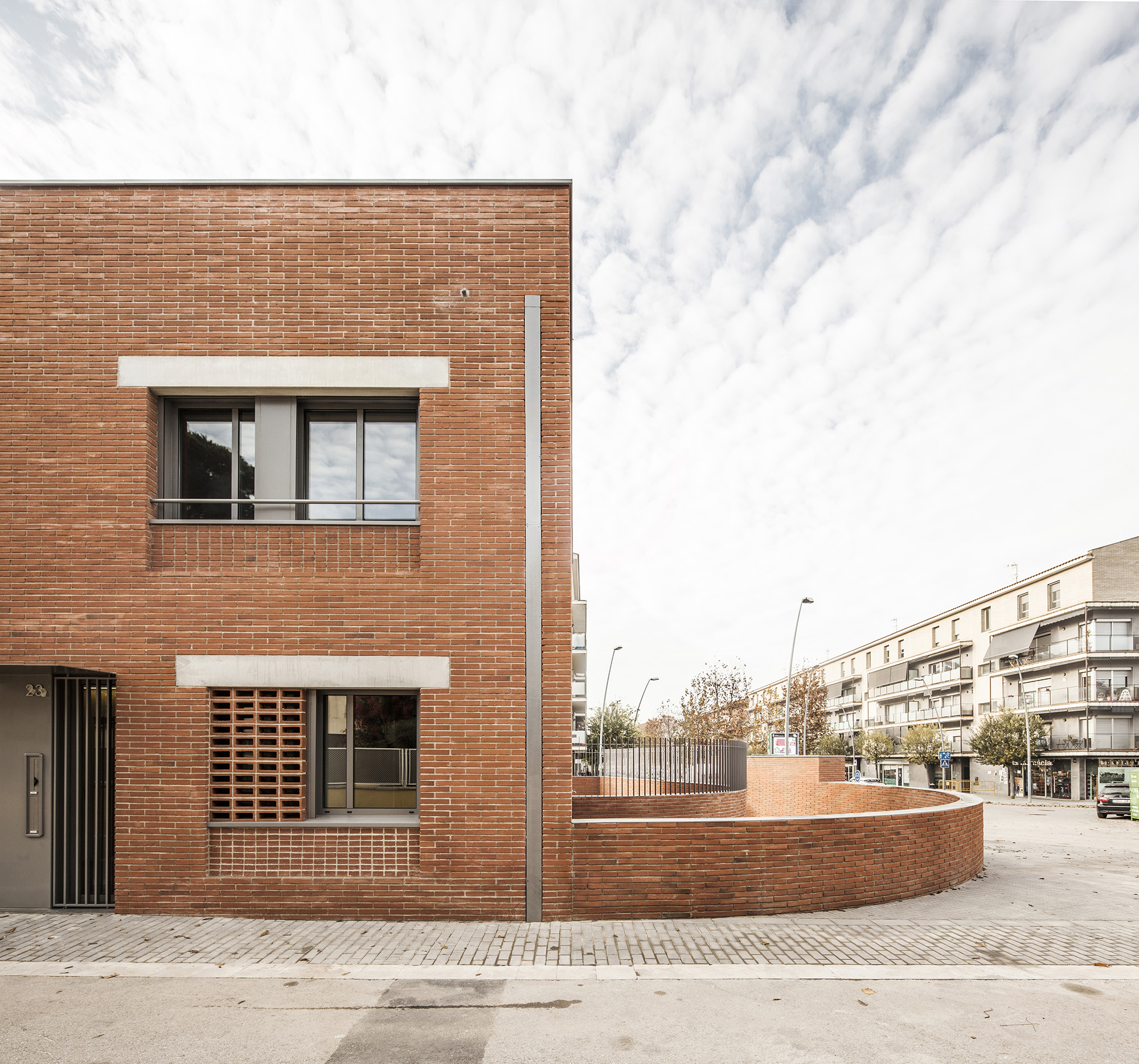 Given this situation, the proposal is to work on the four buildings as independent projects, while endowing them with certain shared characteristics that help establish a common “tone” and contribute to the atmosphere of the neighbourhood. In this sense, brick becomes a unifying element across all four buildings, while openings, railings, lintels, and plinths vary in each case, allowing each piece to be inserted into the neighbourhood with its own personality and, at the same time, to engage in a dialogue that lends character to the whole.