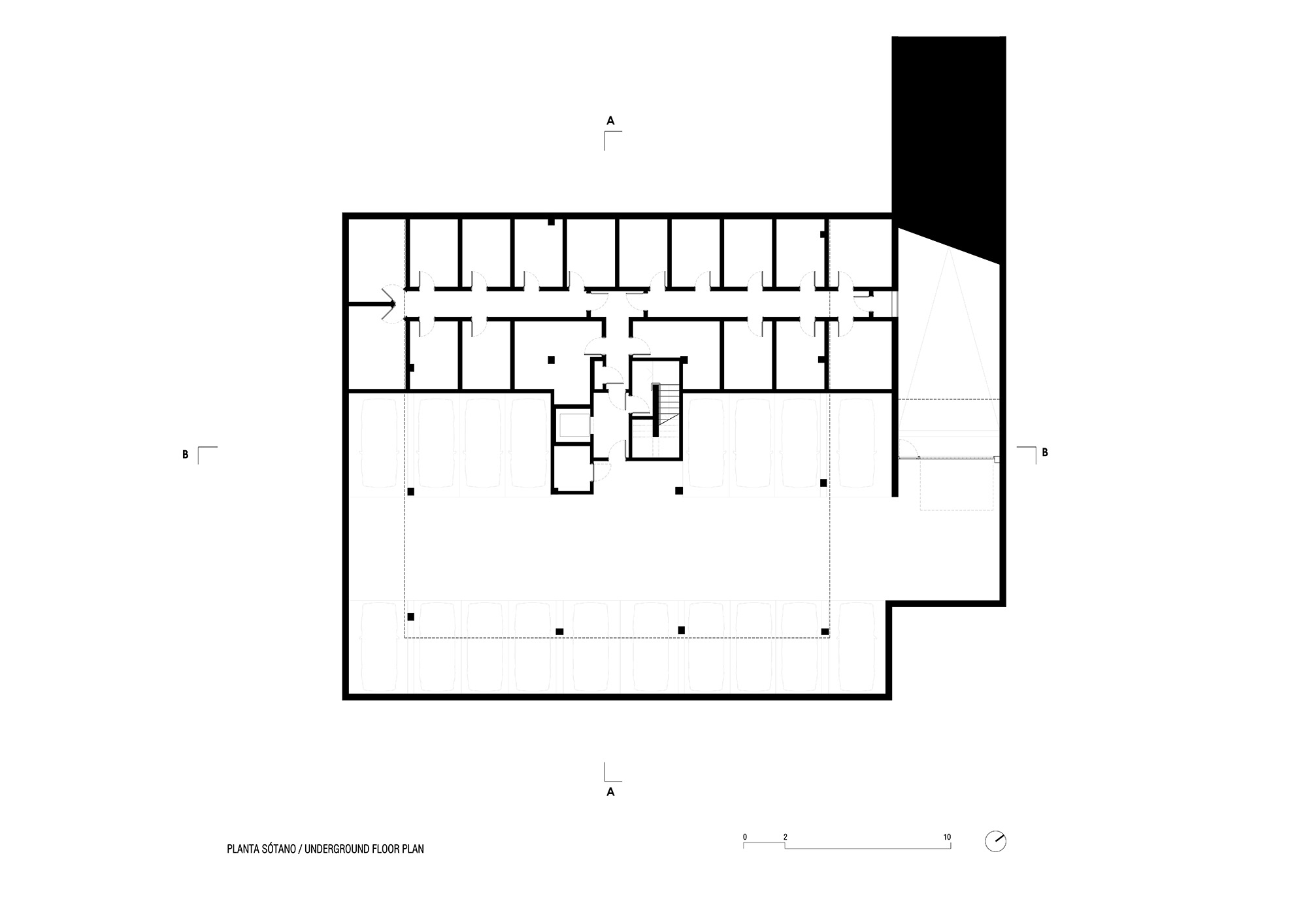 En uno de los bloques, tanto la estructura como la cubierta estaban terminadas; en el otro caso, ya se había ejecutado un sótano que condicionaba en gran parte el resto del proyecto.