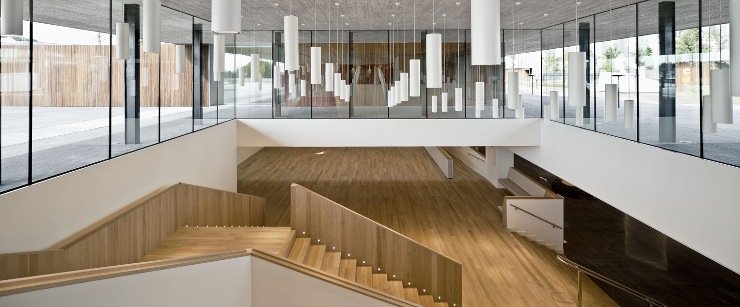 The level right below the central garden is turned into the functional core of the whole complex; both of the new office building as well as the existing one.