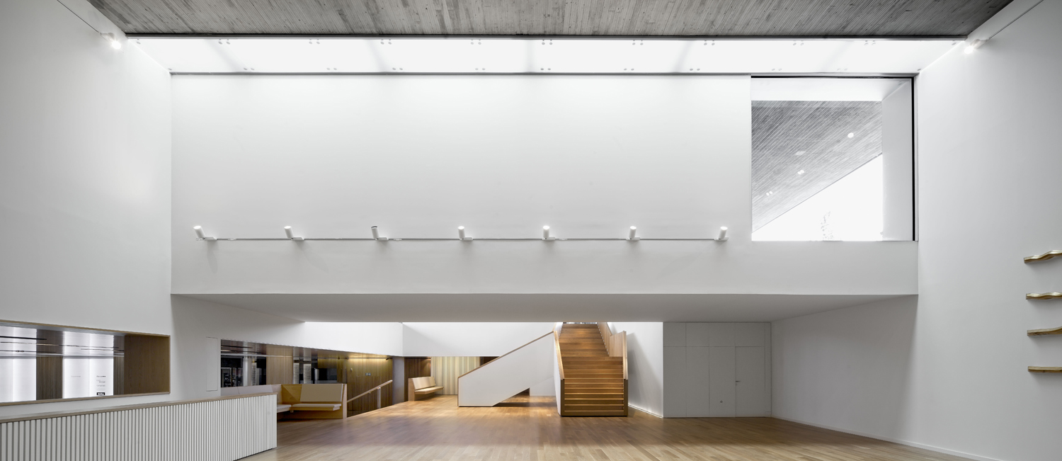 Se trata de una planta de poco más de 8.000 m2 situada en cota bajo rasante a la que se ha pretendido dotar de una cualidad espacial y una generosa afluencia de luz natural que la rediman de su condición soterrada. Estrategias como conseguir unas salidas al exterior en la cota de la planta, agujerear la planta en un par de puntos estratégicos con unos patios generosos, o generar un doble espacio en la escalera de acceso para abrir las vistas desde la planta enterrada hacia el exterior, ayudan a conseguirlo.